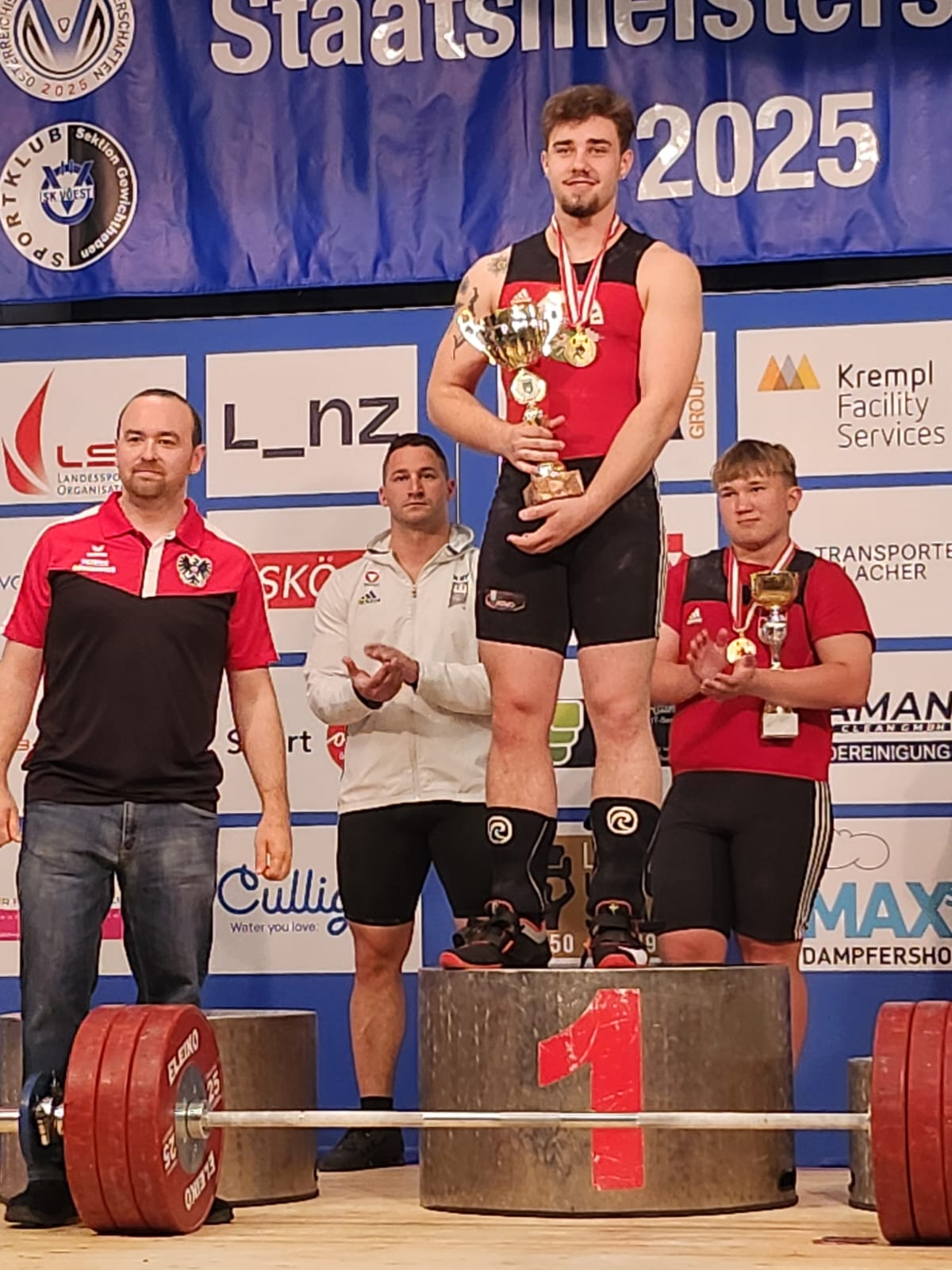 Tobias Leitinger, - 102 kg mit beeindruckender Präsenz auf der Bühne zeigte Tobias eine starke Leistung in der schwereren Gewichtsklasse. ER brachte 107 kg im Reißen und 125 kg im Stoßen zur Hochstrecke - technisch sauber und mit viel Kontrolle. Damit sicherte er sich die Sibermedaille in der Allgemeinen Klasse und Gold in der U20. Tobias, überzeugt nicht nur durch seine Kraft, sondern auch durch seine Wettkampfreife und Konzentration. Ein vielversprechender Athlet mit großem Entwicklungspotenzial - da darf man in Zukunft noch einiges erwarten!