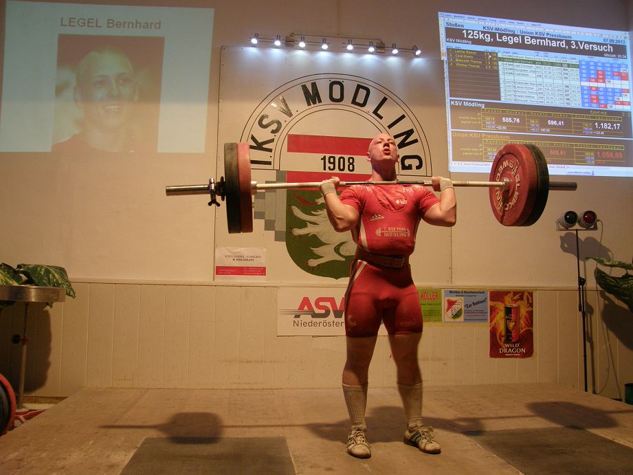 Im Kraftsportzentrum Mödling trafen am Samstag den 23.03.2013 unsere Löwen auf die Wettkampfgemeinschaft Klosterneuburg/Milon. Selbst die vereinten Kräfte der WKG reichten nicht aus um uns zu besiegen. Es war bis zum Schluss ein harter Kampf, die Führung wechselte mehrmals aber dann zeigten unsere Athleten ihren Kampf und Siegeswillen und wuchsen aus sich heraus. Mit neuen persönlichen Bestleistungen von Ceidl Martin (Bild) und Nussgraber Jürgen fuhren sie letztlich den Sieg mit 1416,23 zu 1353,02 Punkten ein. Die Gäste waren von der guten Stimmung, der neuen Multimedia-Übertragung und der gut ersichtlichen Listenführung begeistert. Die 1. KSV-Mödling hat wieder Aufwind und verspricht den Fans weiter zu kämpfen. Mit dem Sieg konnten die Athleten ihrem Obmann Walter Legel schon ein schönes Geburtstagsgeschenk machen, überreichten ihm aber dann auch noch einen wunderschönen Geschenkkorb zum 50er. Liebe