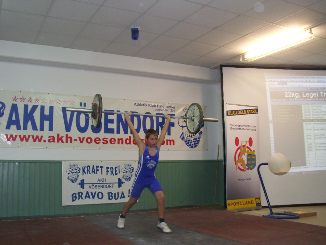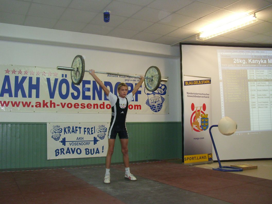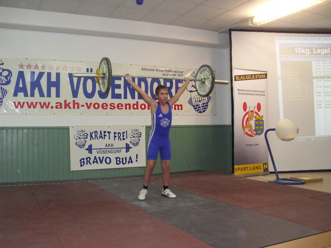 Am 13.Okt.2013 fand in Vösendorf die 5. und letzte runde von Schüler-Cup statt. Gleichzeitig wurde dieses auch als Landesmeisterschaft gewertet. Es waren 27 Starter am Start, davon 9 Mädchen & 18 Burschen. Kanyka Mario hat zwar die höchste Technikbewertung, es reichte aber nur für Platz 2. Silber auch in der Landesmeisterschaft und Silver in der Gesamtwertung von Schülercup. Mario schaffte 26 kg Reißen und 35 kg Stoßen. Legel Thomas schaffte 18 kg Reißen & 25 kg Stoßen.