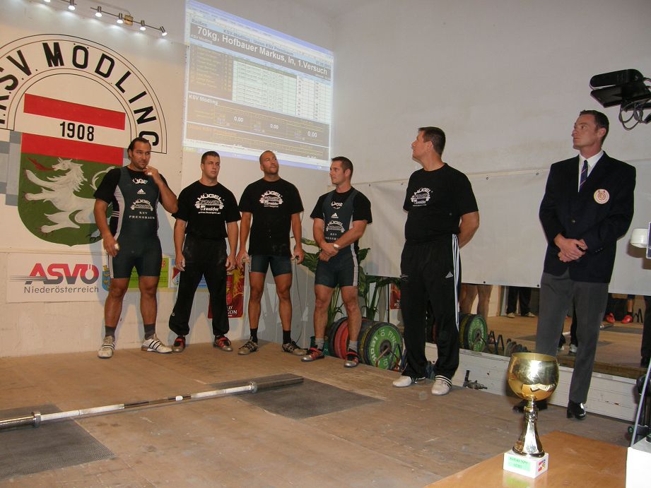 Am 09.11.2013 fand im Kraftsportzentrum Mödling der ASVÖ-CUP der Sportstadt Mödling unter zahlreicher internationaler Beteiligung statt. Gäste aus Tschechien, der Slowakei und Ungarn waren am Start um sich mit den österreichischen Athleten zu messen. Auf Grund der regen Teilnehmerzahl waren 5 Gruppen am Start und das Event erfreute die Zuschauer durch anhaltende Spannung. Letztlich siegte die Mannschaft aus der Slowakei mit 1257,33 Punkten vor Tschechien mit 1104,72 Punkten. Den 3. Platz konnten die Mödlinger Löwen unter Rot-Weiß-Roter Flagge für sich verbuchen. Die Mannschaft aus Ungarn wurde mit 949,80 Punkten vierter. Die Spannung war aber auch am Höhepunkt, als sich die Stärksten der Starken ein Duell um den Preis des Tagesbesten lieferten. Hier wogte die Führung bis zum letzten Versuch von Einem zum Anderen. Erst ganz zum Schluss stand dann Milan KOVAC aus der Slowakei mit 337,87 Punkten als Sieger fest. Gefolgt von seinem Landsmann SVRCEK Pavol mit 337,32 Punkten und BERAN Andrej aus Tschechien mit 331,11 Punkten. Ein besonderer Leckerbissen war die Darbietung der, außer Konkurrenz startenden Nachwuchsathleten der KSV-Mödling. Die beiden 11-jährigen Sportler KANYKA Mario und LEGEL Thomas begeisterten das Publikum vor allem durch ihre gute Technik und Einsatzfreude. Die Konkurrenz des ASVÖ-CUP´s der Sportstadt Mödling ist über die Grenzen des Landes hinweg bekannt und hat das Engagement der KSV-Mödling der Sportstadt Mödling wieder internationales Flair und Anerkennung gebracht. Die Anwesenden Stadtpolitiker wie ZB. Michael KANYKA und Sportstadtrat MAYER waren begeistert.