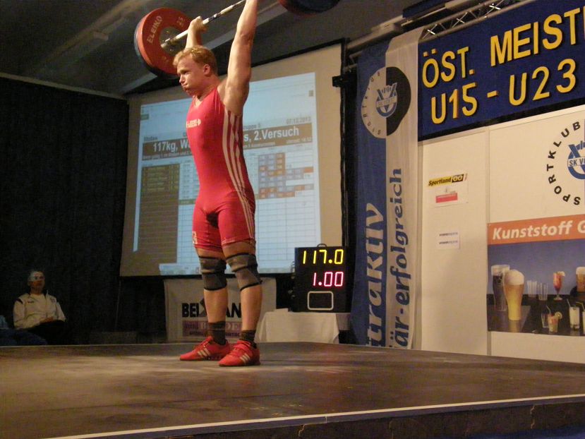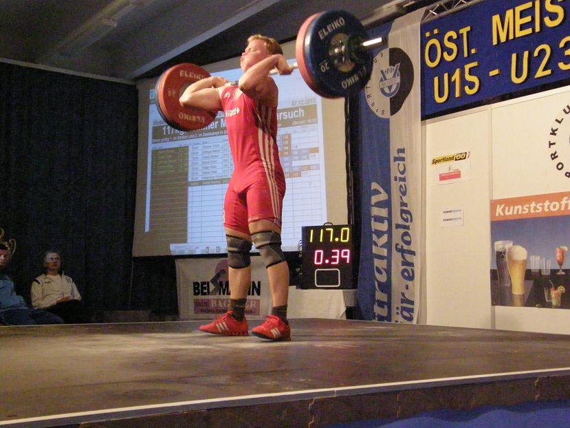 Am 07.12.2013 fand in Linz die Österreichische Staatsmeisterschaft für die U15 /U17/U20/U23 statt. Der Mödlinger KSV schickte 2 Athleten an den Start. Legel Bernhard startete in der Kat.-77kg. Gleich bei seinen ersten Versuch auf 93kg scheiterte er und musste ausbessern. Auch in seinen dritten Versuch auf 98kg scheiterte er. Im Stoßen ging es ihm nicht besser. Es war halt nicht sein Tag und musste sich mit 93 kg Reißen & 120 kg Stoßen mit Platz 4. zufrieden geben. Wallner Matthias startete in der Kat. -94 kg. Matthias ging es nicht viel besser. Erster Versuch weg, er musste ausbessern und dritter Versuch auch weg. Matthias schaffte in Reißen 95 kg & Stoßen 117 kg und wurde mit den 3.Platz belohnt.