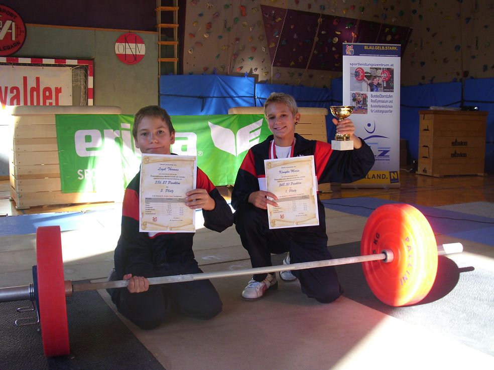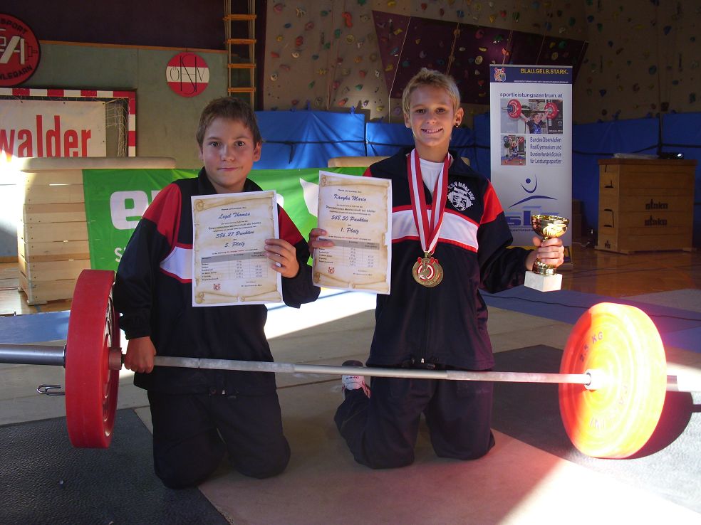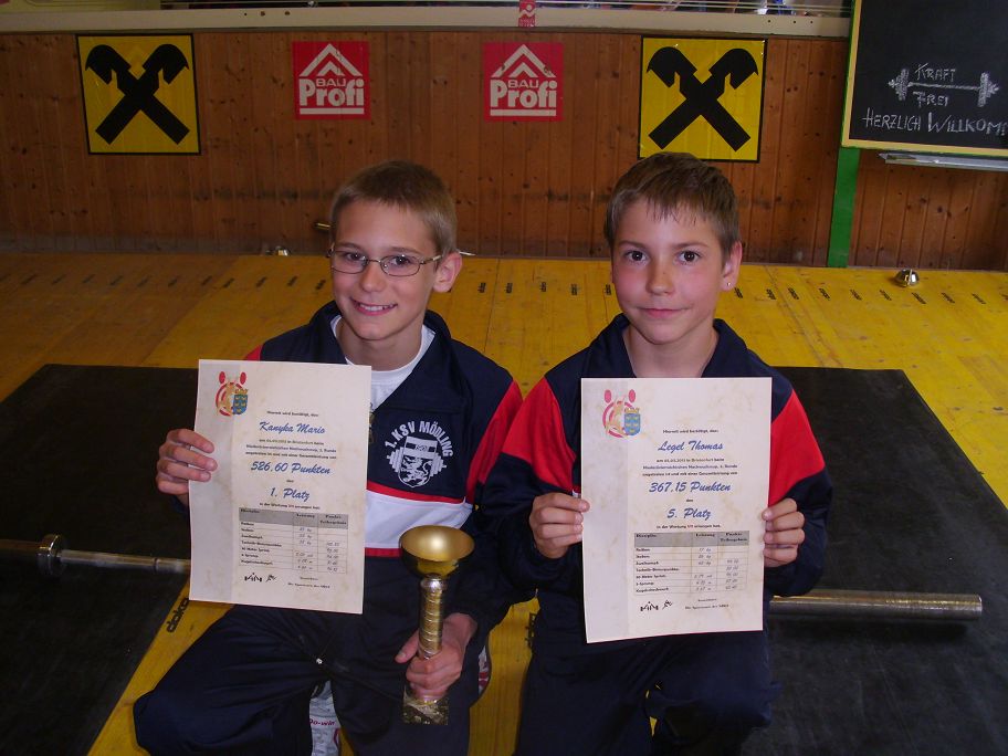 Am Samstag den 08.09.2013 fand in Tulln die Öster. Schüler Mehrkampf Meisterschaft statt. Der KSV-Mödling schickte 2 Junglöwen in der U11 an den Start. Mario Kanyka konnte seinen Titel von Vorjahr verteidigen und holte sich Gold. Mario hatte leichten Rückstand im Reißen (27kg ) und Stoßen (34kg) konnte aber in den Leichtathletik seine Stärken mit neuen Bestleistungen 585,50 Punkten das Gold für sich gewinnen. >Legel Thomas mit leichten Trainingsrückstand konnte einen guten 5. Platz belegen. Auch er konnte im Reißen (17kg) und Stoßen (25kg) in den Leichtathletikbewerben neue Bestleistungen 386,27 Punkte für sich verbuchen.