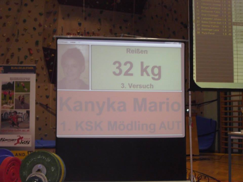 Am 26.04.2014 fand in Harland die Schüler Mehrkampfmeisterschaft von Österreich statt. Kanyka Mario ging als einziger Starter für den KSV-Mödling an den Start. Mario schaffte 31 kg Reißen und 41 kg Stoßen und holte sich den zweiten Platz.< In der Leichtathletik konnte er seinen zweiten Platz verteidigen und holte Silber in der Gesamtwertung mit 254,44 Punkten. Mario bekam die beste Punktenote bei der Technikbewertung! Bravo!!