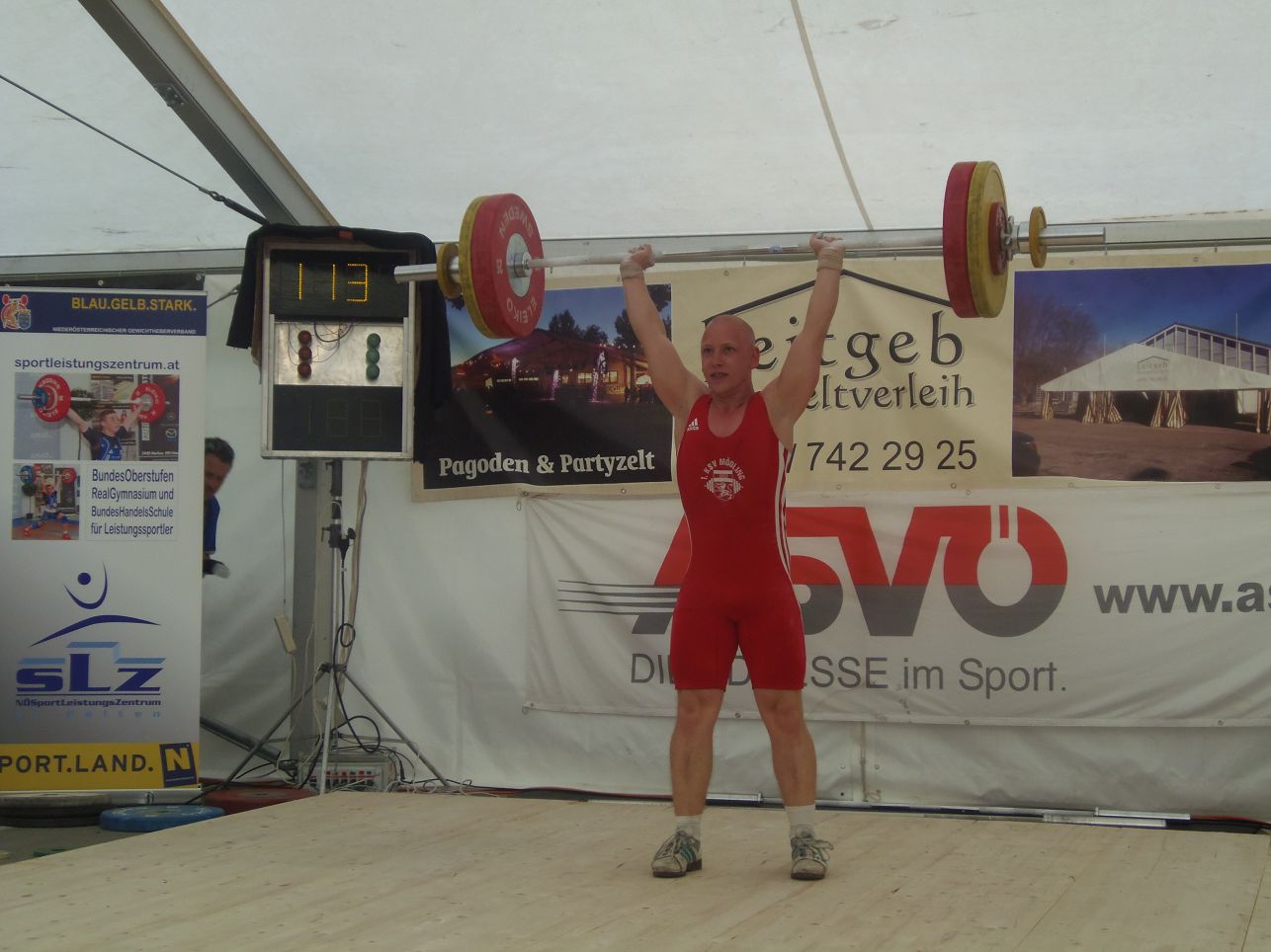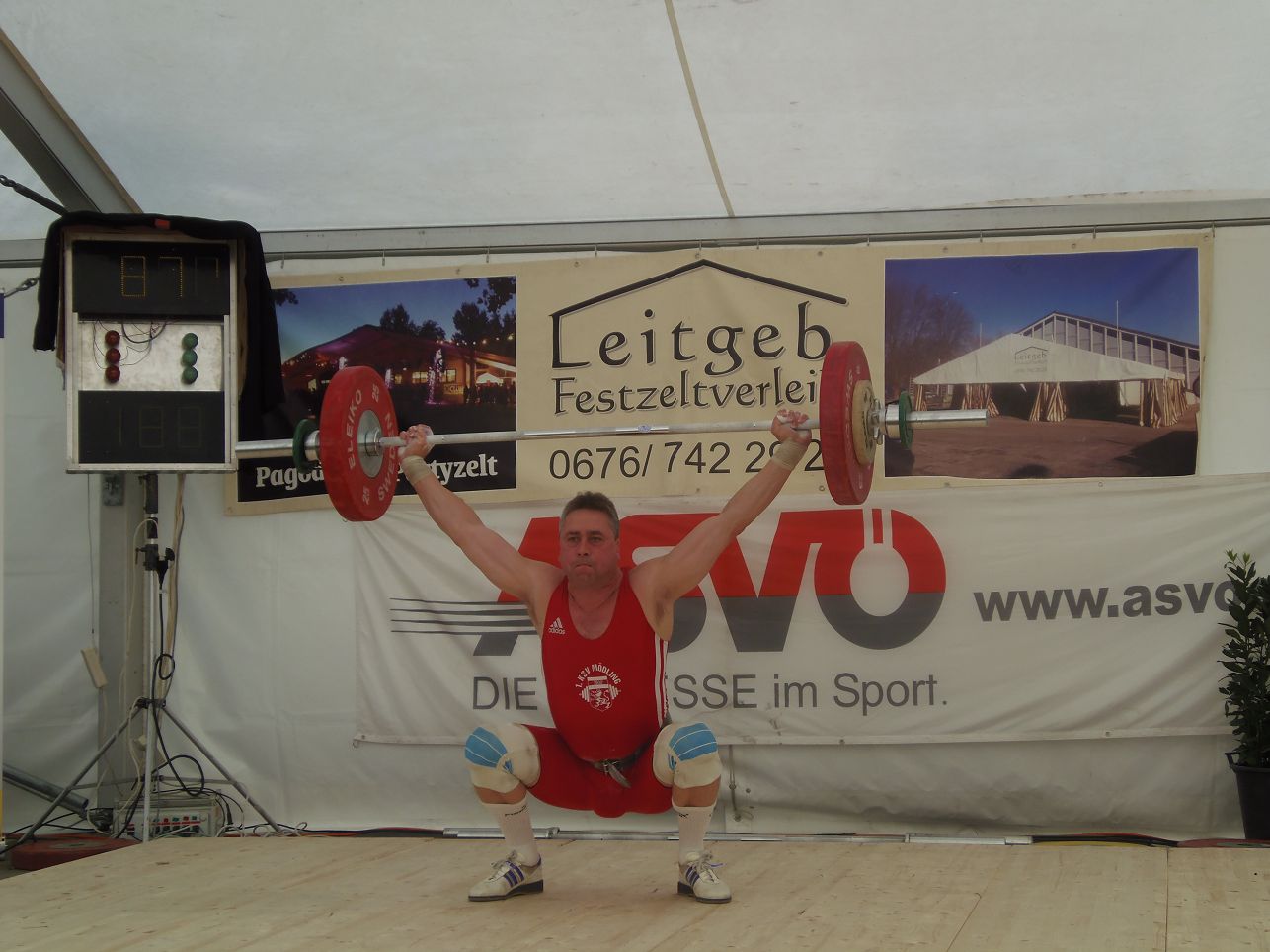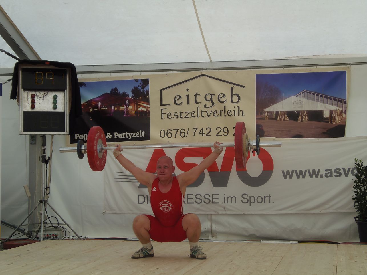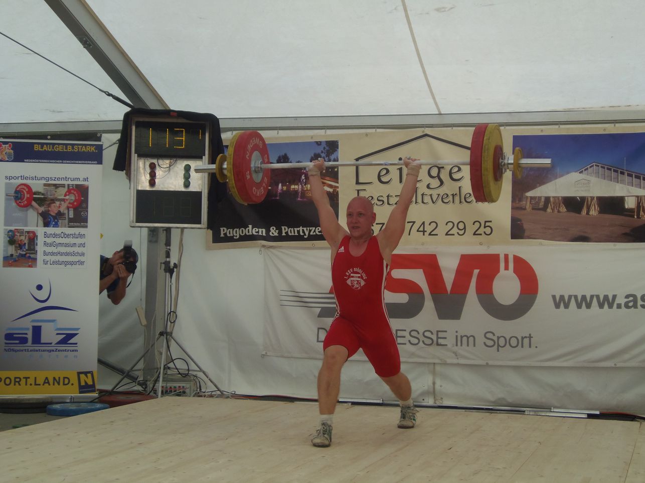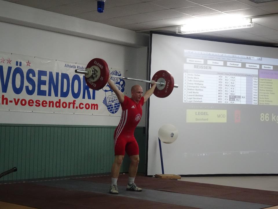 Am 29.03.2014 fand in Baden die Nö Landesmeisterschaft statt. Der KSV-Mödling schickte unseren Bernhard Legel an den Start. Ein heißes Duell hat sich nach der Abwaage herausgestellt. Ein harter Gegner, Arnel Bekric, die beiden sind ziemlich gleich stark und beide hatten das gleiche Anfangsgewicht gemeldet. Im Reißen konnte Arnel mit 98 kg vorlegen, nachdem Bernhard mit 95kg ausstieg. Im Stoßen aber wendete sich das Blatt und Bernhard konnte seine Stärke voll ausspielen. Arnel schaffte 117 kg ;Bernhard 126 kg im Zweikampf 221 kg und holte Gold und ist neuer Landesmeister von Nö.