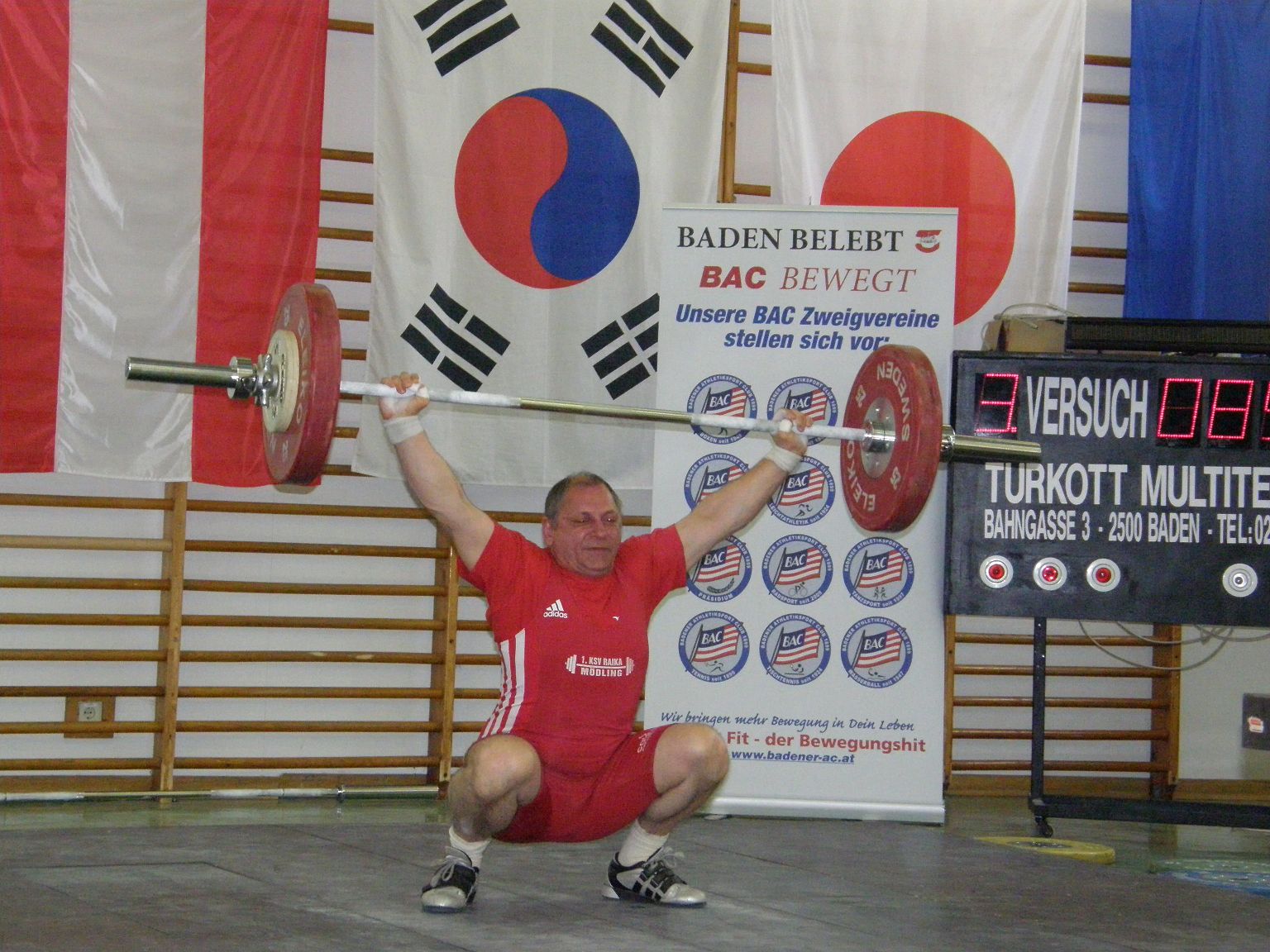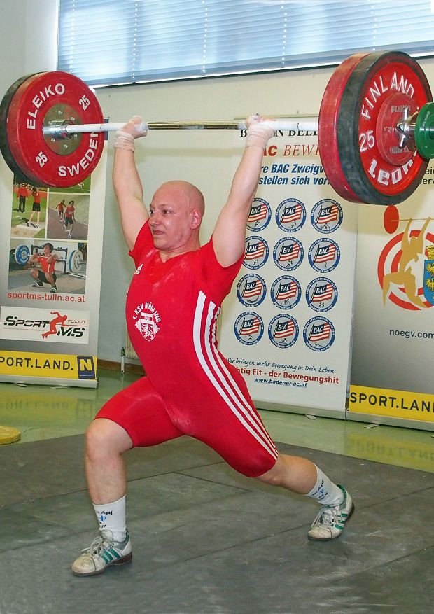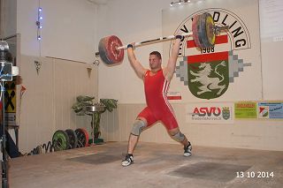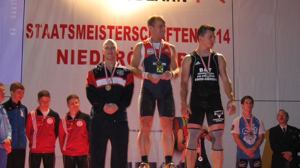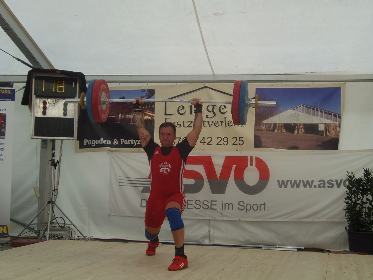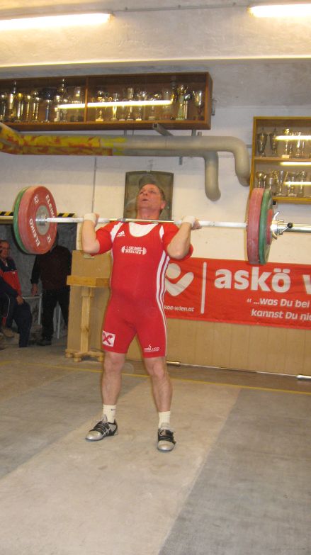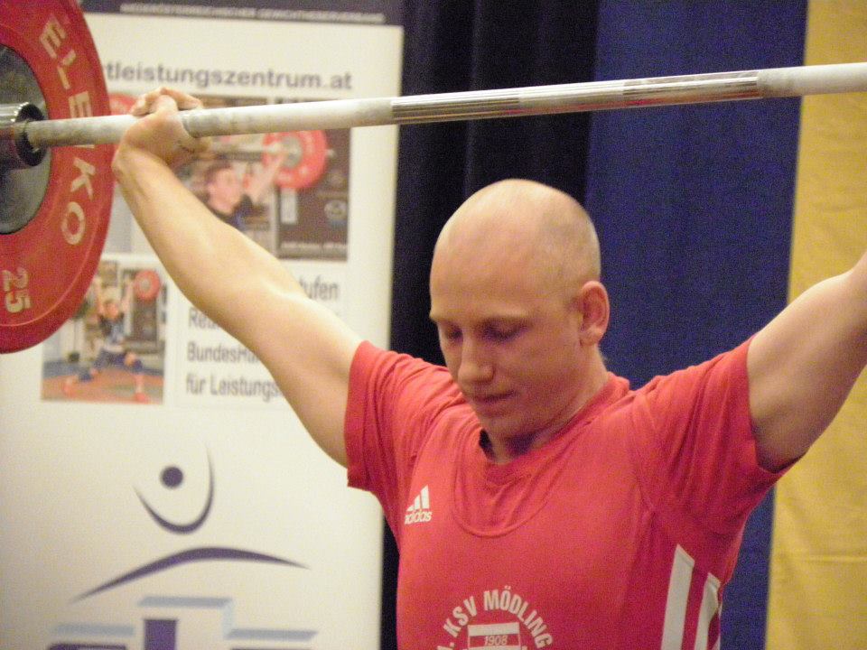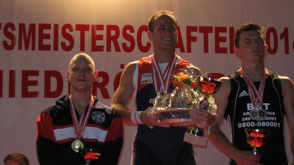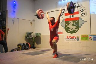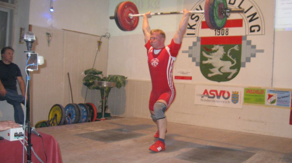 Am 29.03.2014 fand in Baden die Nö Landesmeisterschaft statt. Der KSV-Mödling schickte unseren Bernhard Legel an den Start. Ein heißes Duell hat sich nach der Abwaage herausgestellt. Ein harter Gegner, Arnel Bekric, die beiden sind ziemlich gleich stark und beide hatten das gleiche Anfangsgewicht gemeldet. Im Reißen konnte Arnel mit 98 kg vorlegen, nachdem Bernhard mit 95kg ausstieg. Im Stoßen aber wendete sich das Blatt und Bernhard konnte seine Stärke voll ausspielen. Arnel schaffte 117 kg ;Bernhard 126 kg im Zweikampf 221 kg und holte Gold und ist neuer Landesmeister von Nö.