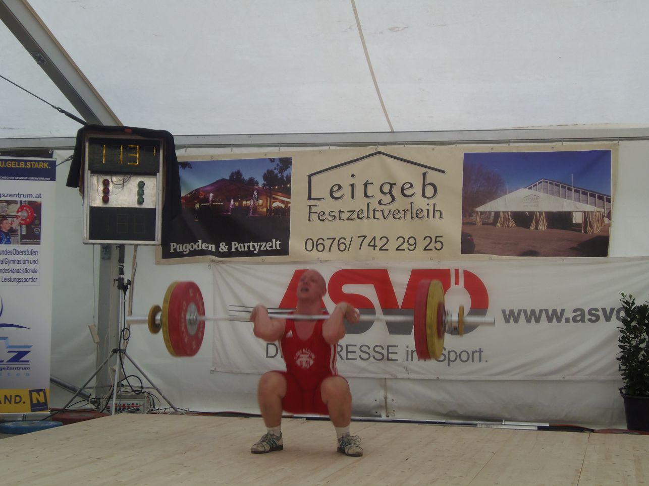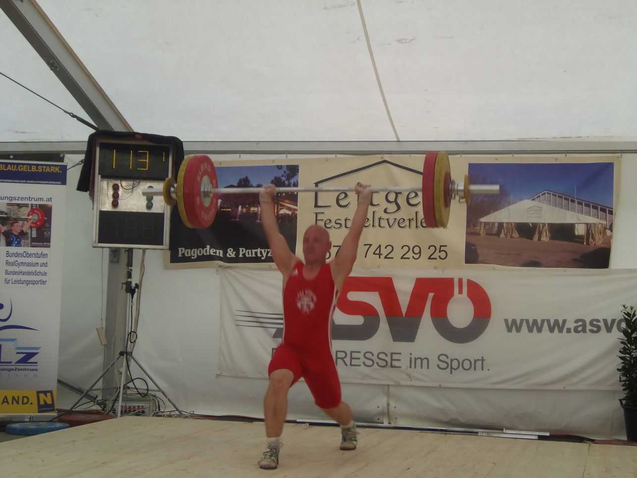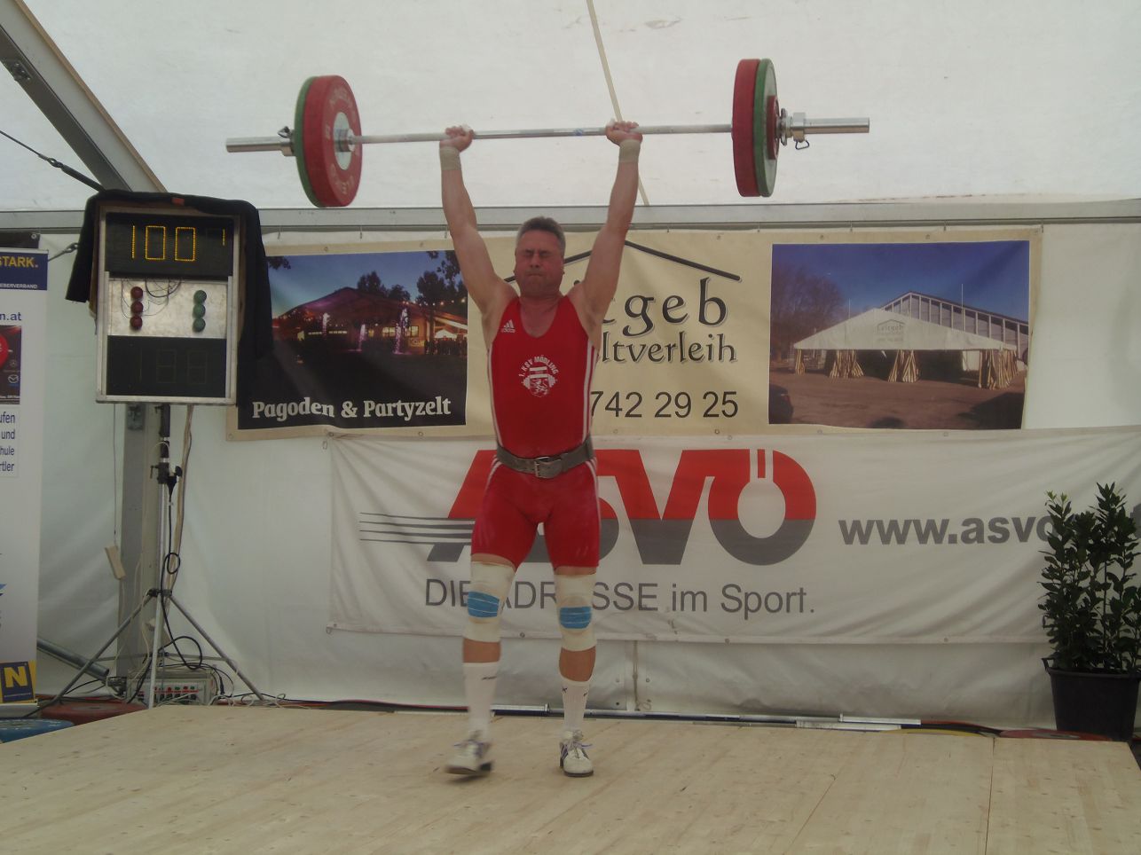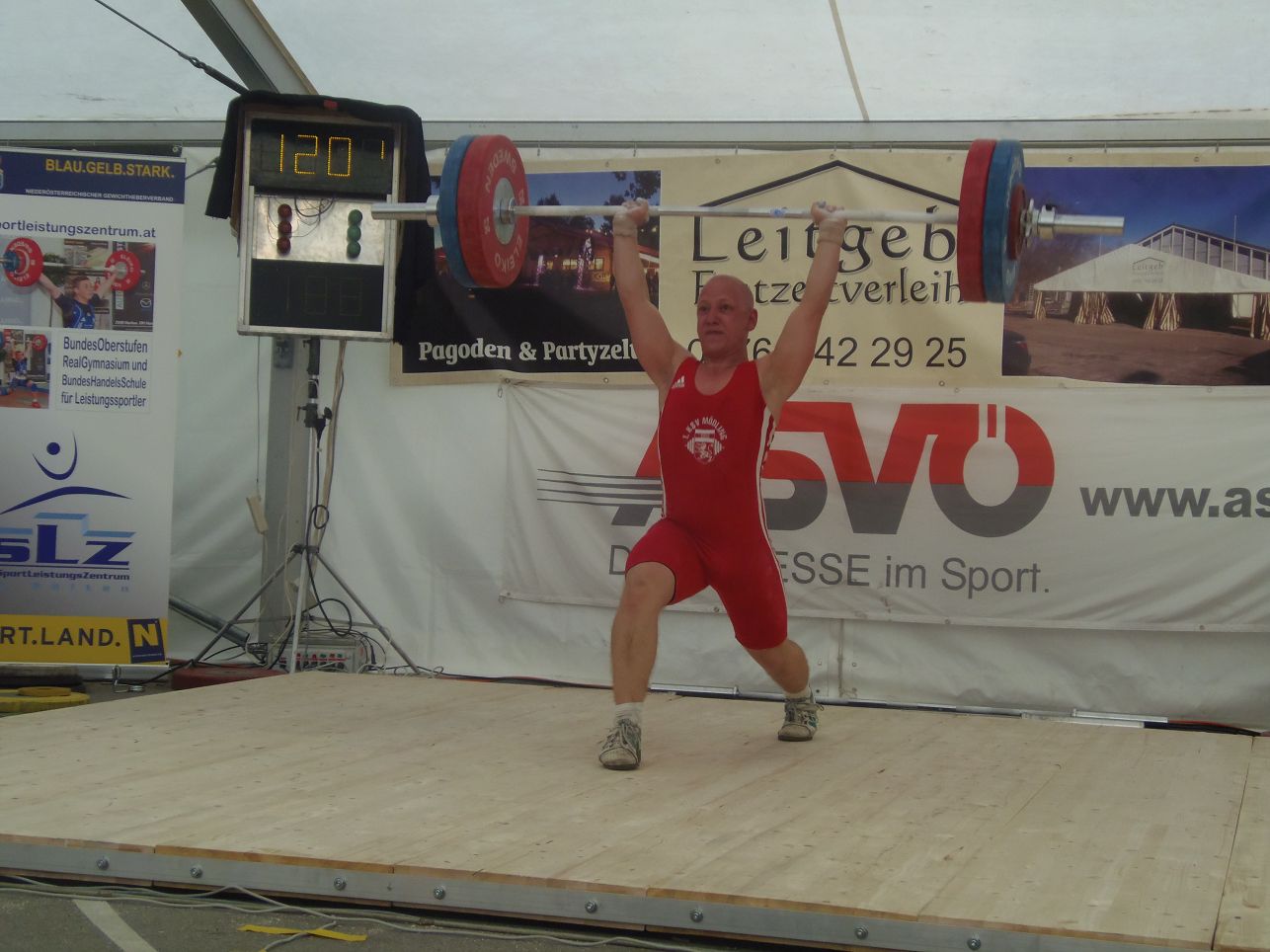 Am 29.03.2014 fand in Baden die Nö Landesmeisterschaft statt. Der KSV-Mödling schickte unseren Bernhard Legel an den Start. Ein heißes Duell hat sich nach der Abwaage herausgestellt. Ein harter Gegner, Arnel Bekric, die beiden sind ziemlich gleich stark und beide hatten das gleiche Anfangsgewicht gemeldet. Im Reißen konnte Arnel mit 98 kg vorlegen, nachdem Bernhard mit 95kg ausstieg. Im Stoßen aber wendete sich das Blatt und Bernhard konnte seine Stärke voll ausspielen. Arnel schaffte 117 kg ;Bernhard 126 kg im Zweikampf 221 kg und holte Gold und ist neuer Landesmeister von Nö.