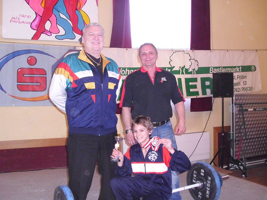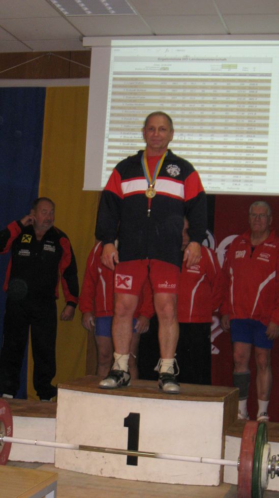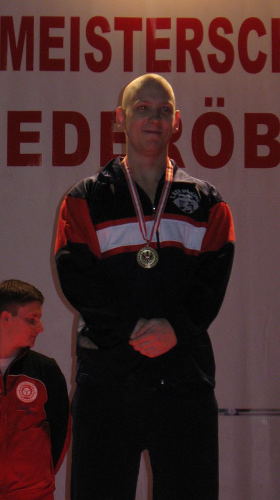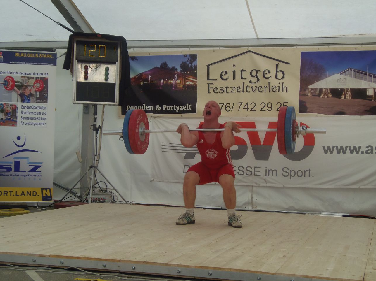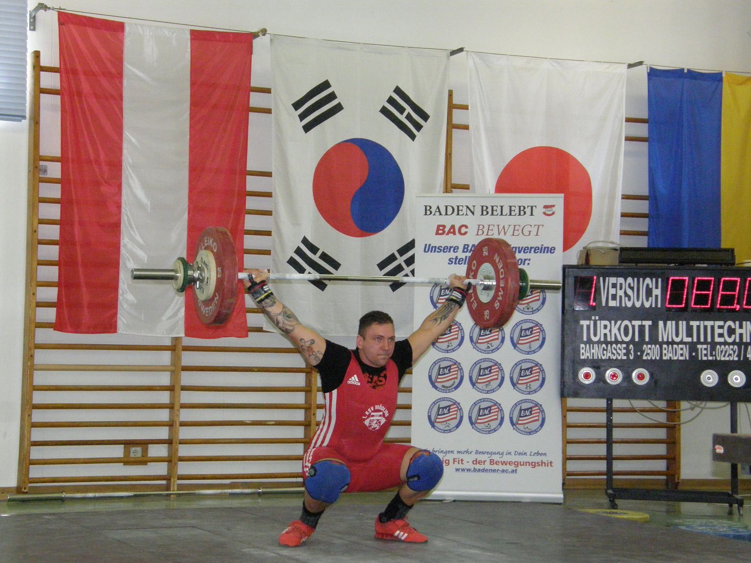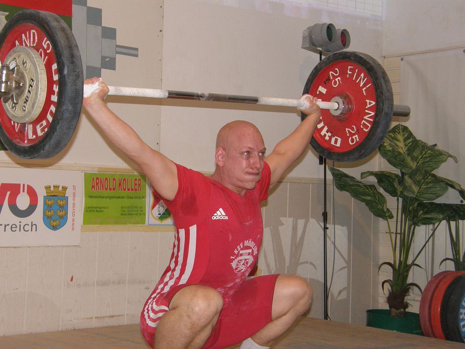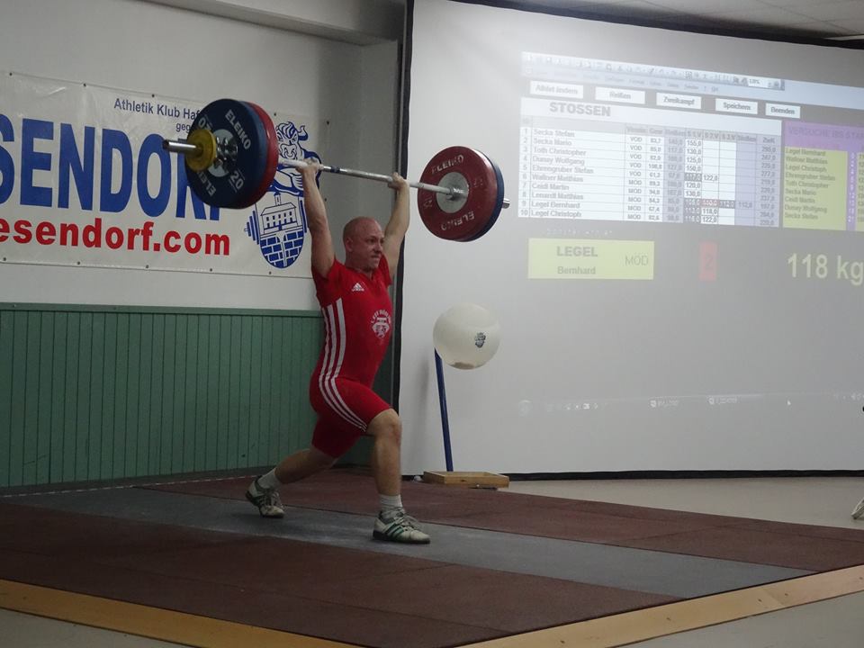 Am 29.03.2014 fand in Baden die Nö Landesmeisterschaft statt. Der KSV-Mödling schickte unseren Bernhard Legel an den Start. Ein heißes Duell hat sich nach der Abwaage herausgestellt. Ein harter Gegner, Arnel Bekric, die beiden sind ziemlich gleich stark und beide hatten das gleiche Anfangsgewicht gemeldet. Im Reißen konnte Arnel mit 98 kg vorlegen, nachdem Bernhard mit 95kg ausstieg. Im Stoßen aber wendete sich das Blatt und Bernhard konnte seine Stärke voll ausspielen. Arnel schaffte 117 kg ;Bernhard 126 kg im Zweikampf 221 kg und holte Gold und ist neuer Landesmeister von Nö.