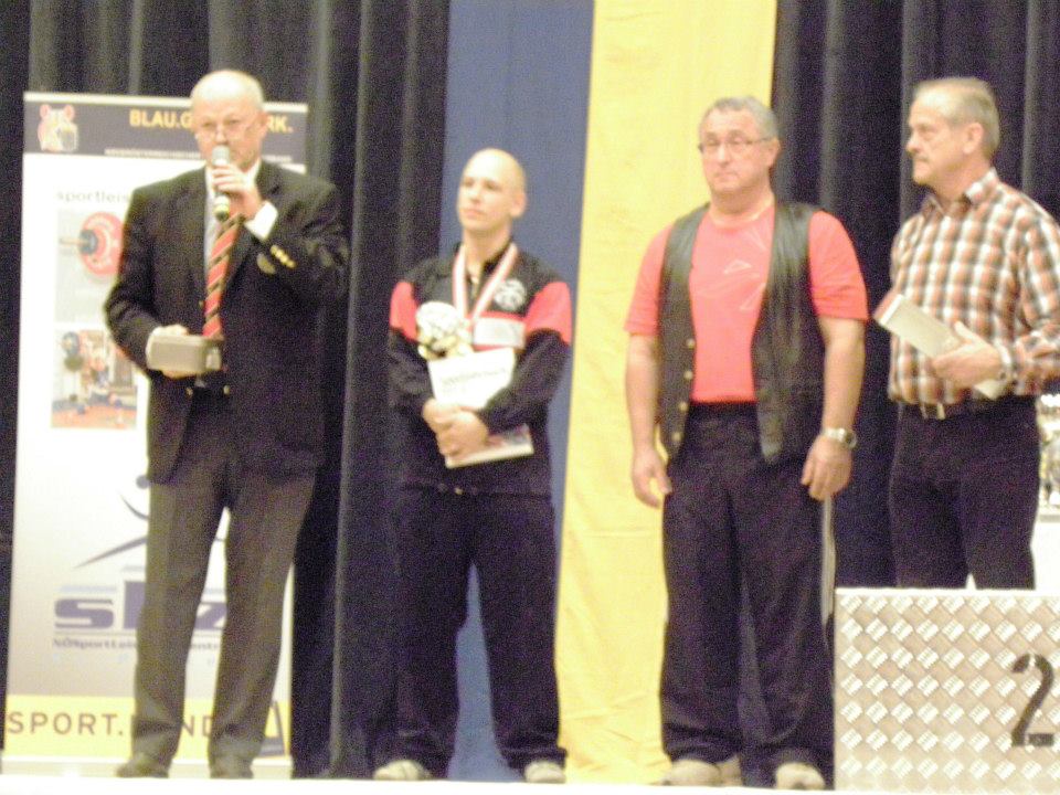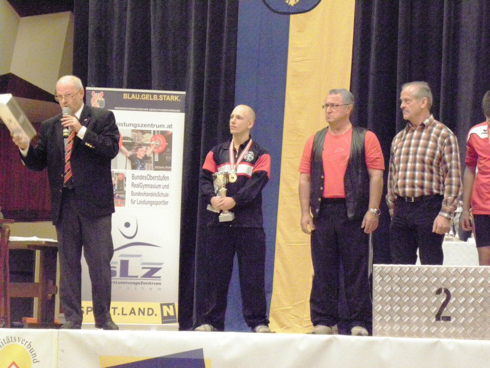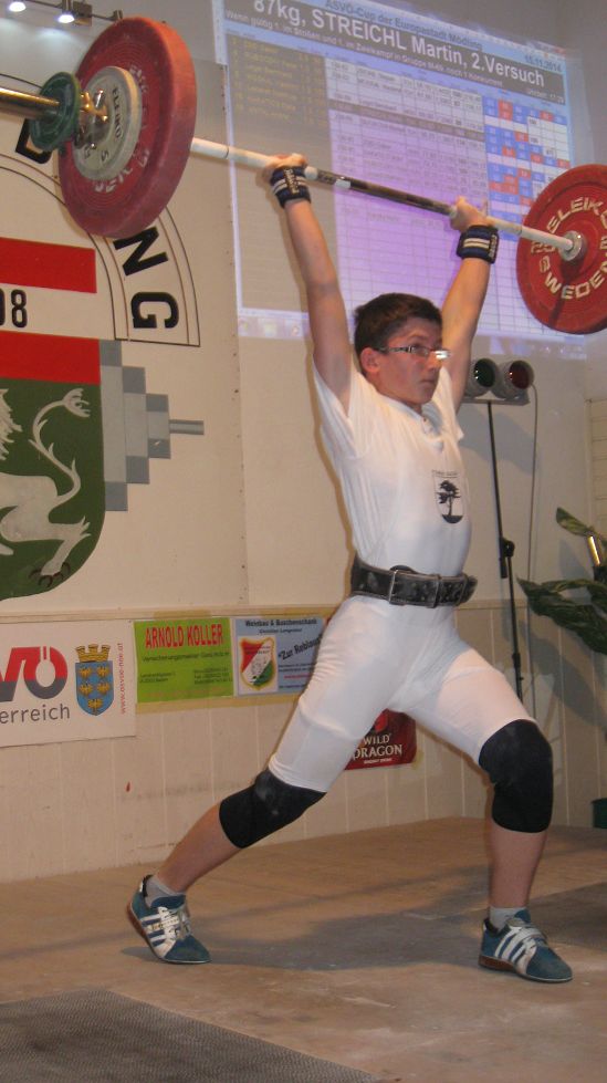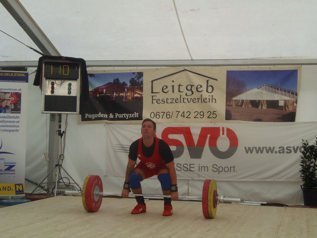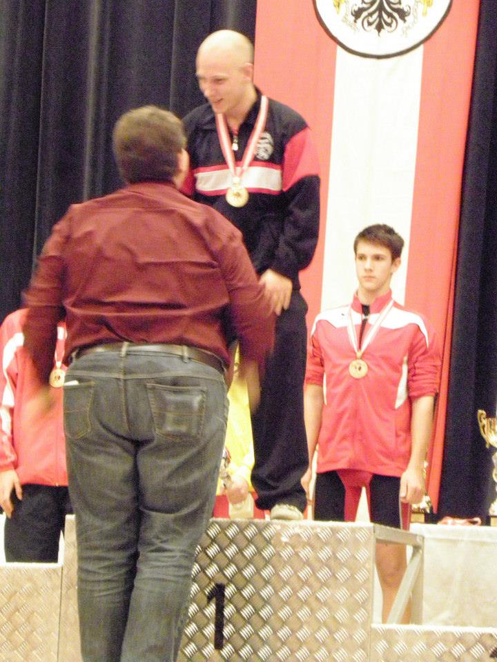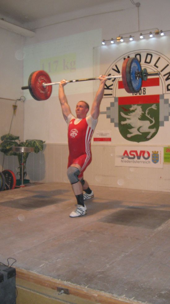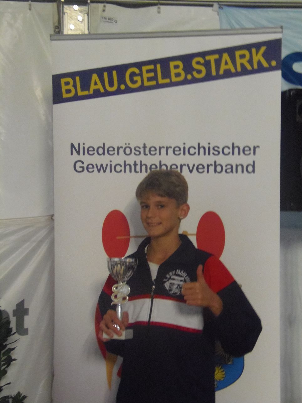 Am 29.03.2014 fand in Baden die Nö Landesmeisterschaft statt. Der KSV-Mödling schickte unseren Bernhard Legel an den Start. Ein heißes Duell hat sich nach der Abwaage herausgestellt. Ein harter Gegner, Arnel Bekric, die beiden sind ziemlich gleich stark und beide hatten das gleiche Anfangsgewicht gemeldet. Im Reißen konnte Arnel mit 98 kg vorlegen, nachdem Bernhard mit 95kg ausstieg. Im Stoßen aber wendete sich das Blatt und Bernhard konnte seine Stärke voll ausspielen. Arnel schaffte 117 kg ;Bernhard 126 kg im Zweikampf 221 kg und holte Gold und ist neuer Landesmeister von Nö.