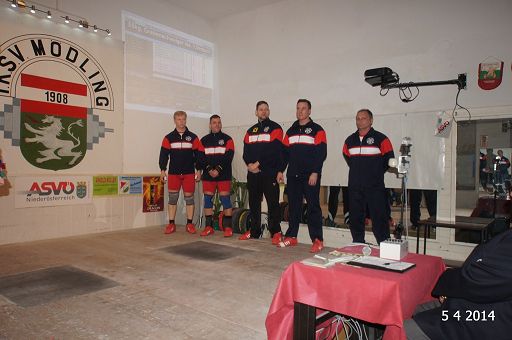 Am 15.03.2014 fand in Wien 14.Bezirk der erste Masters Austria Cup 2014 statt. Erstmals konnte der KSV-Mödling eine Mannschaft (3 Athleten) stellen. Legel Walter konnte sich von seinen ersten Wettkampf steigern und schaffte 85 kg Reißen & 105 kg Stoßen. Kanyka Michael auch er hatte eine große Steigerung und schaffte 87 kg Reißen und 107 kg Stoßen. Und Burger Anton mit 66 kg Reißen und 88 kg Stoßen, wo auch noch eine Steigerung drinnen ist. Schließlich konnte sich die Alt Löwen steigern und schafften den 5. Platz: Gesamtpunkte 793,44