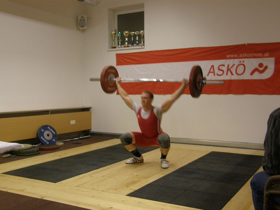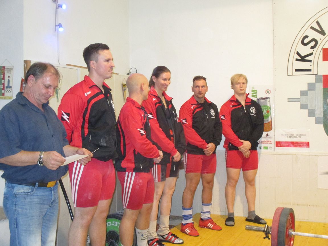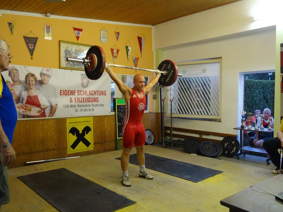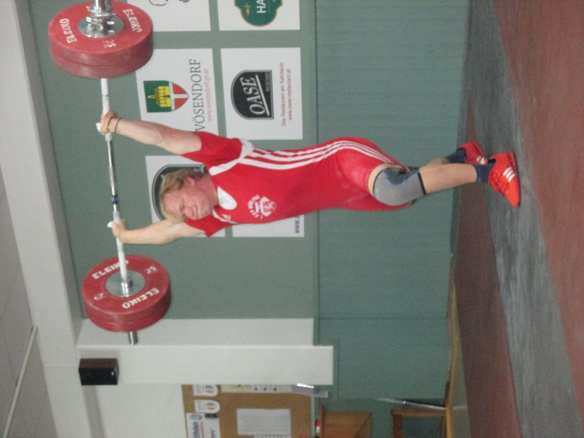 Ein kleines Starterfeld in der Kategorie bis 69kg Körpergewicht. Bernhard konnte sich schon bei seinen ersten Versuchen Gold sichern. Mit 5 gültigen Versuchen schaffte er 95kg Reissen & 118kg Stossen. Reserven hebt er sich, für die nächste Woche stattfindenden Bezirksmeisterschaften in Mannswörth bei Schwechat auf.
