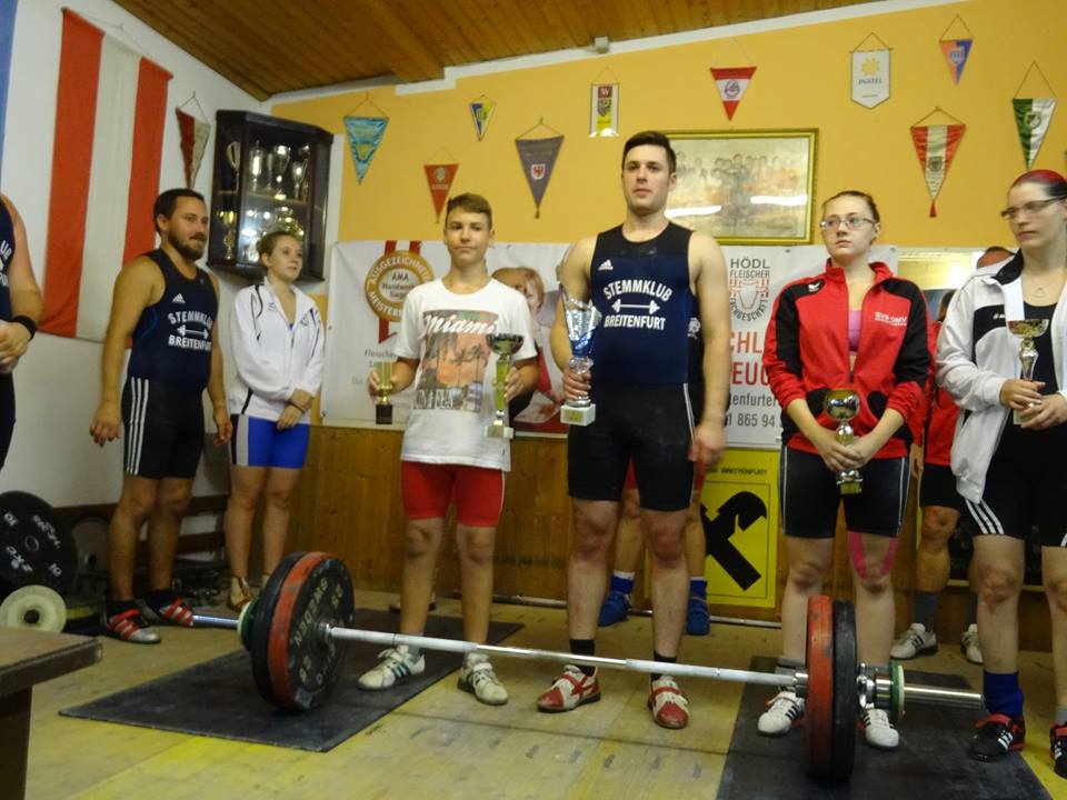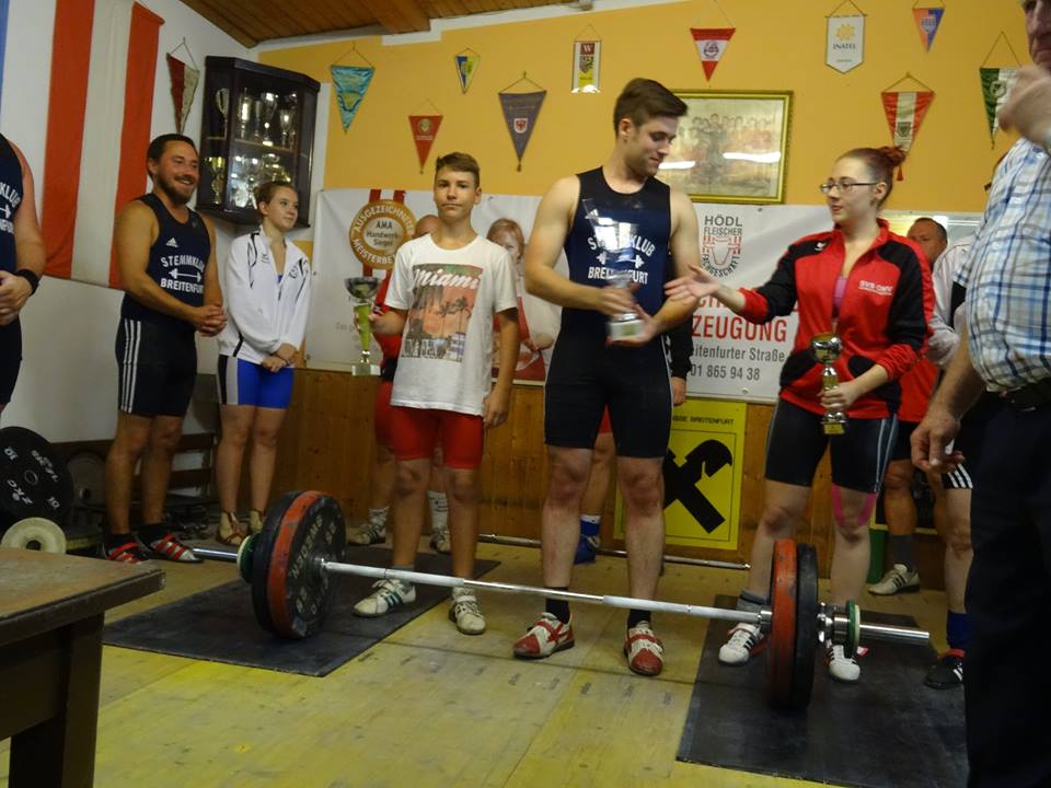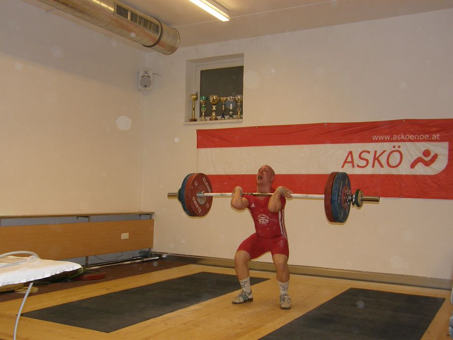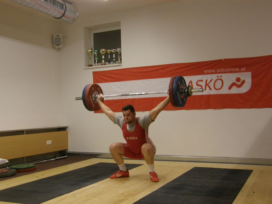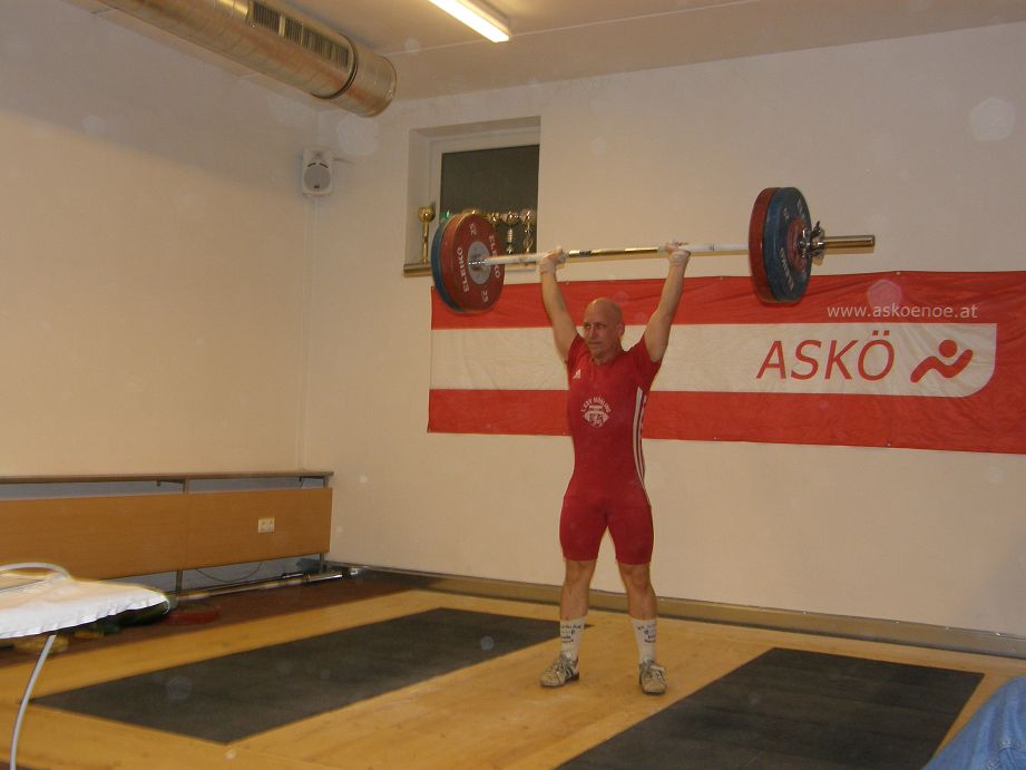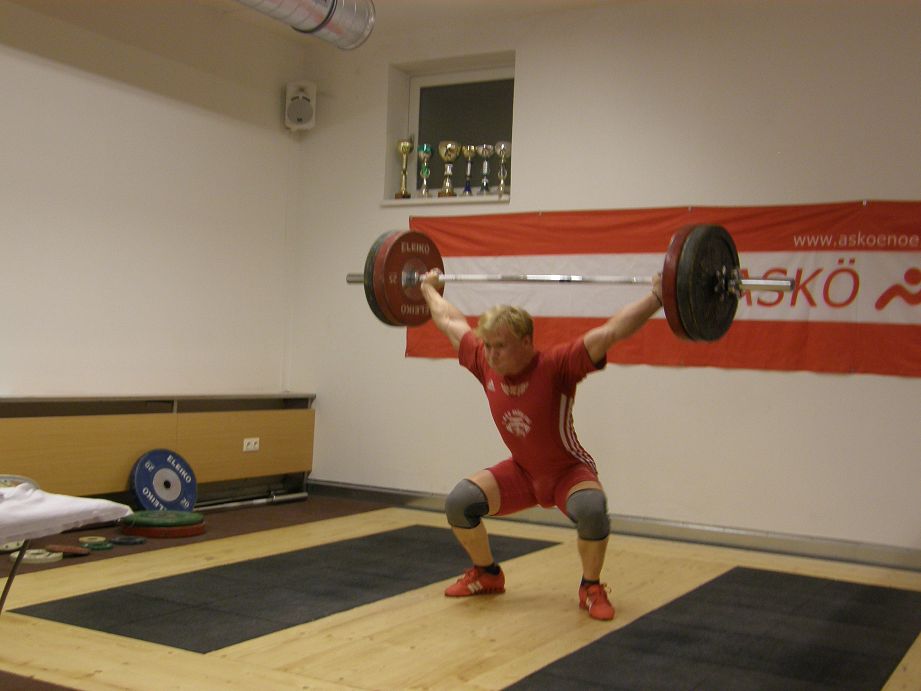 Ein kleines Starterfeld in der Kategorie bis 69kg Körpergewicht. Bernhard konnte sich schon bei seinen ersten Versuchen Gold sichern. Mit 5 gültigen Versuchen schaffte er 95kg Reissen & 118kg Stossen. Reserven hebt er sich, für die nächste Woche stattfindenden Bezirksmeisterschaften in Mannswörth bei Schwechat auf.