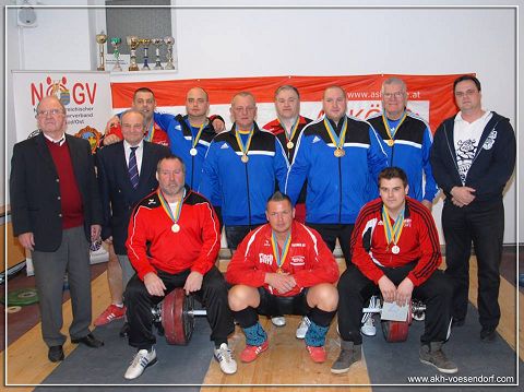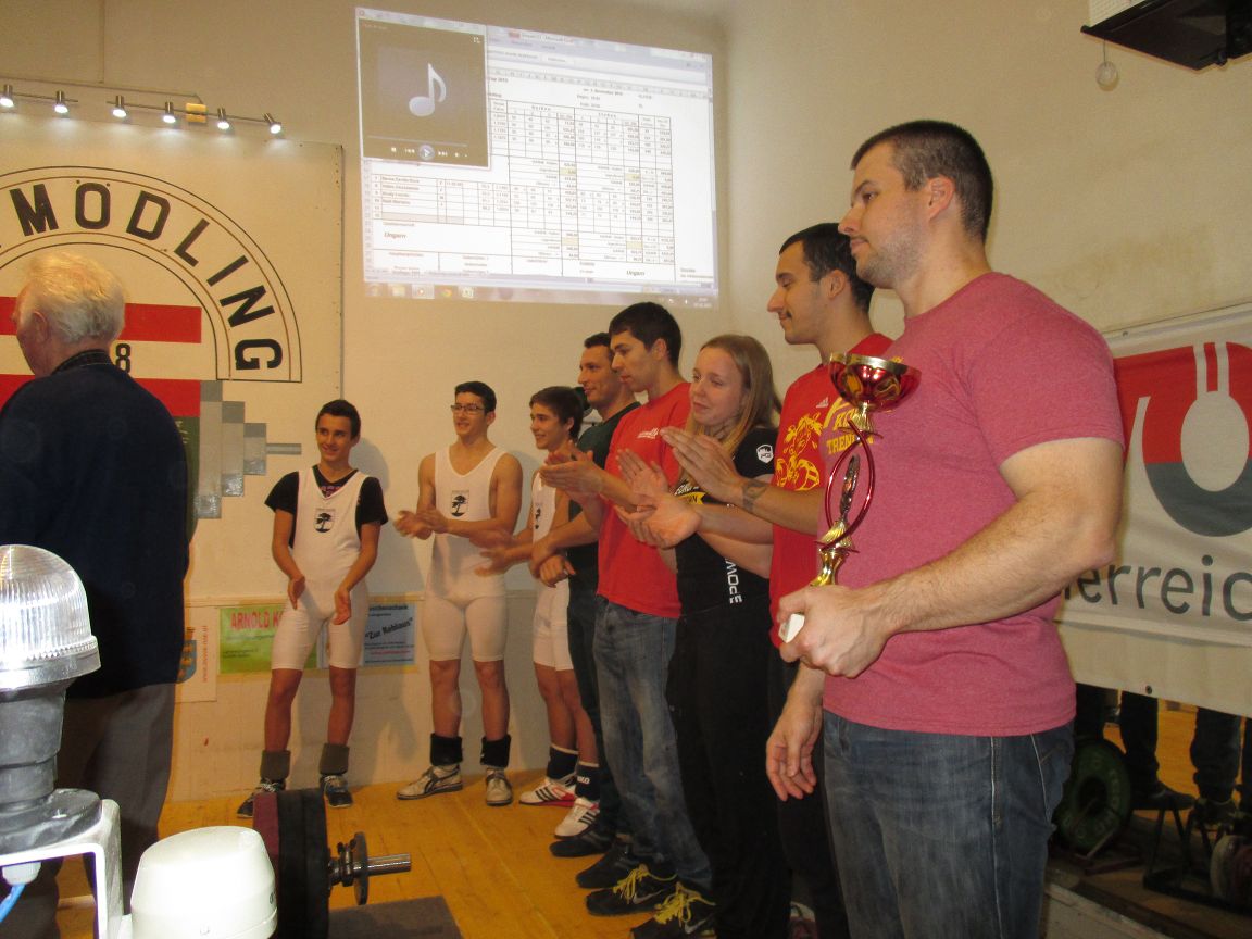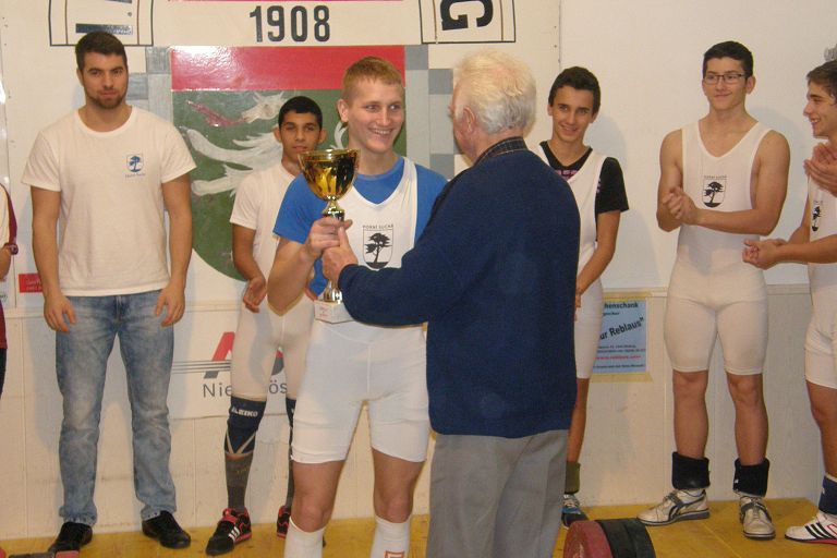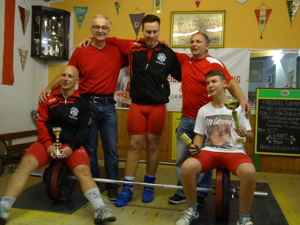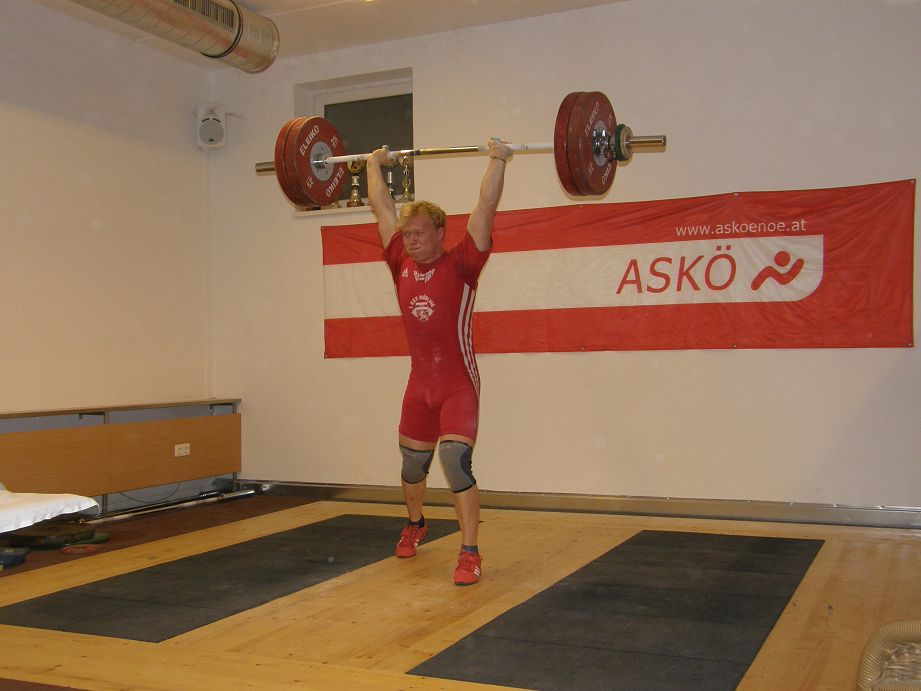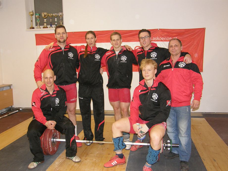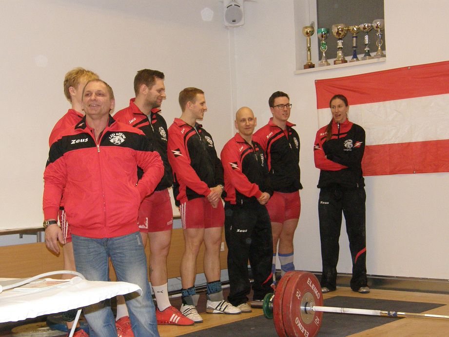 Lenardt Matthias: Mit 5 gültigen Versuchen 90kg Reissen und 112kg Stossen, mit 241,67 Punkten wurde er Klubmeister 2014. Der Titel um den Meister der Meister konnte Legel Bernhard für sich entscheiden. Eine Augenfreude ihn auf der Bühne zu sehen. Er siegte mit 20 Punkten Vorsprung (292,45 Punkten). Mit sechs gültigen Versuchen, 95kg Reissen und 123kg Stossen, konnte er den Titel Meister der Meister 2014 für sich gewinnen. Ceidl Martin: Mit 5 gültigen Versuchen 103kg Reissen und 133kg Stossen konnte er gerade noch den 2. Platz verteidigen (272,67 Punkte) Wallner Matthias: Nicht durch Technik, sondern durch jede Menge Kraft schaffte er 105kg Reissen und 130kg Stossen (271,66 Punkte). Legel Christoph: Ein Formhoch zeichnet sich ab. 96kg Reissen und 120kg Stossen ergaben 258,03 Punkte. Kraft ohne Ende, an der Technik muss noch gefeilt werden. Abraham Martin: Um einer Verletzung vorzubeugen durfte und wollte unser Martin nicht mit Vollgas starten und war zum Schongang gezwungen. 100kg Reissen und 120kg Stossen ergaben 239,03 Punkte. Wir freuen uns schon auf die Mannschaftsmeisterschaft 2015, wir sind bereit!
