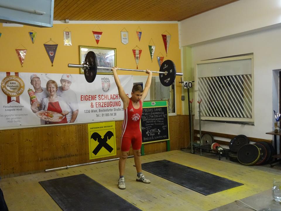 Am 26.09.2015 fand in Harland die Landesmeisterschaft U15 /U17 /U20 /U 23 und die Masters statt. Der KSV-Mödling schickte unseren Oldboy Burger Anton an den Start. Mit sechs gültigen Versuchen konnte unser Alt-Loewe zu Gold stossen.Mit 62 kg Reissen und 85 kg Stossen ergaben dies 211,77 Melzer Punkte.