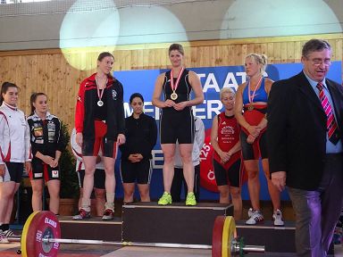 Faltin Caecilia: Sie ist gut in den Wettkampf gekommen, schaffte sechs gültige Versuche. 65 kg Reissen und 70 kg Stossen ergaben eine super Punkteleistung von 255,63 Punkten.