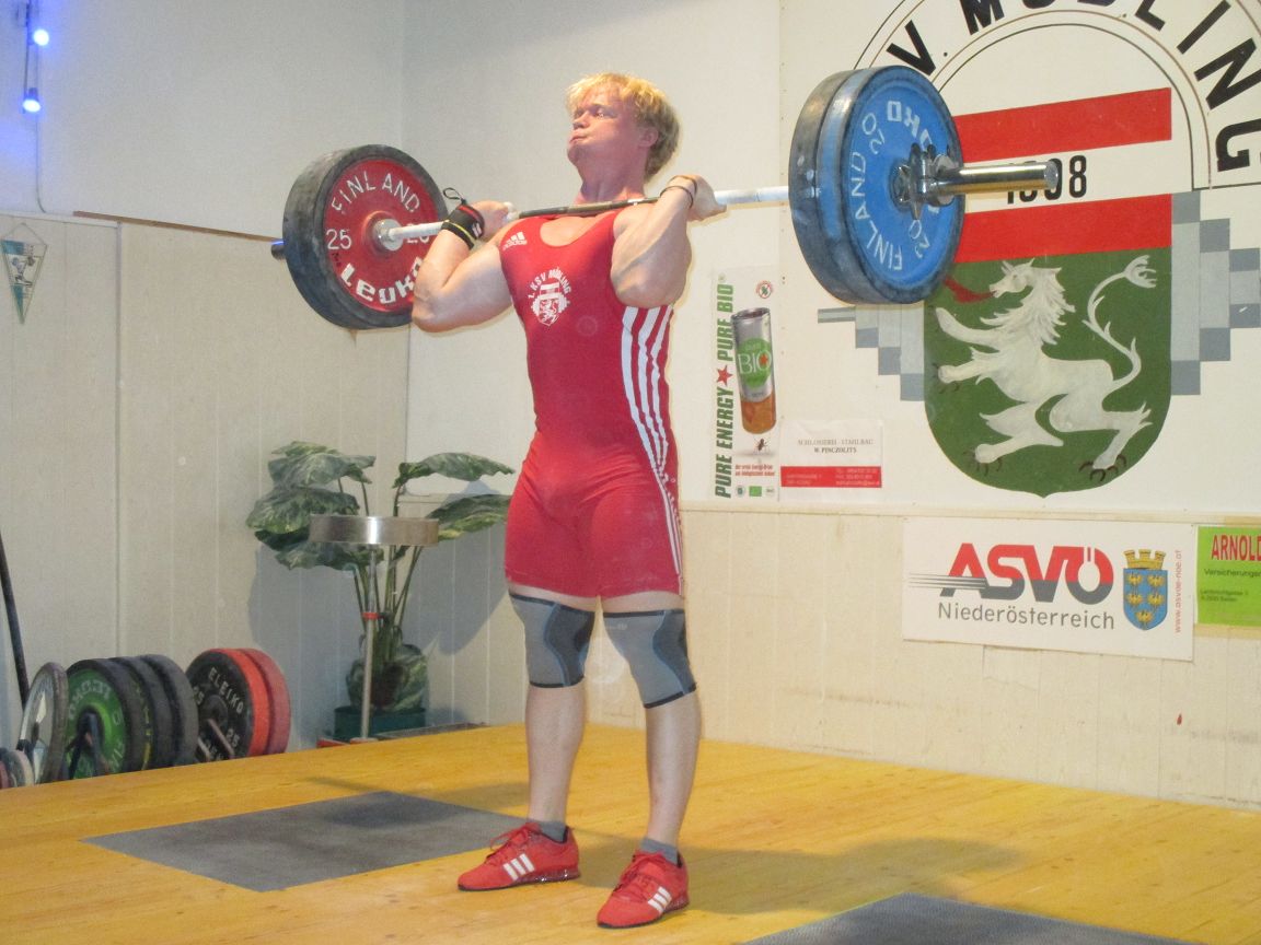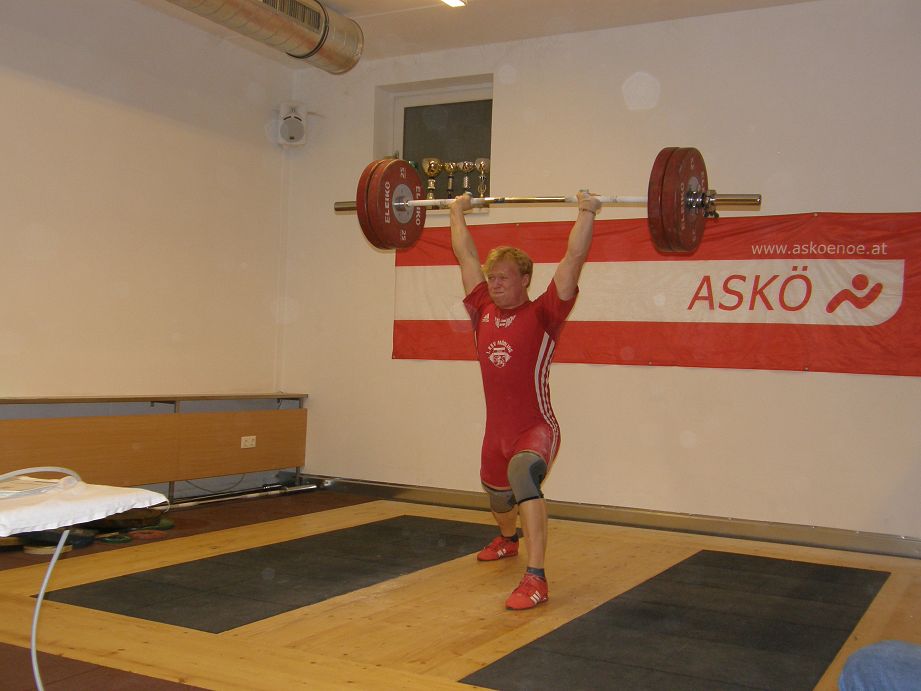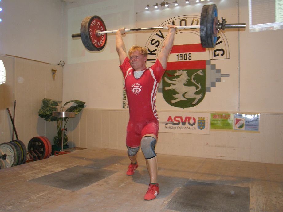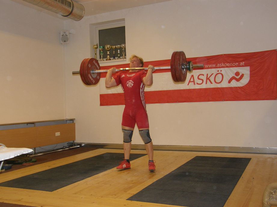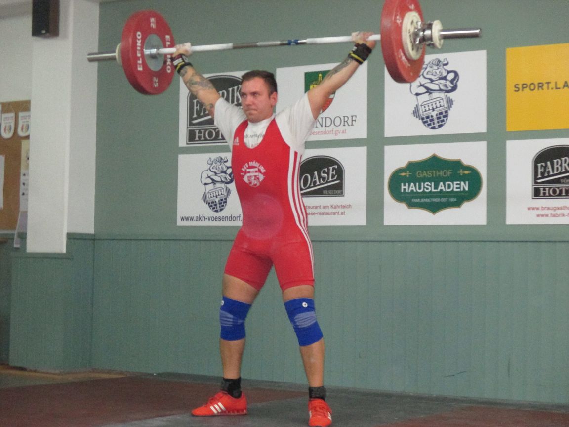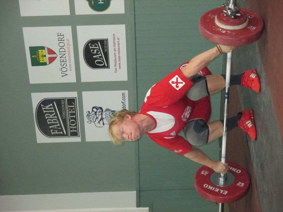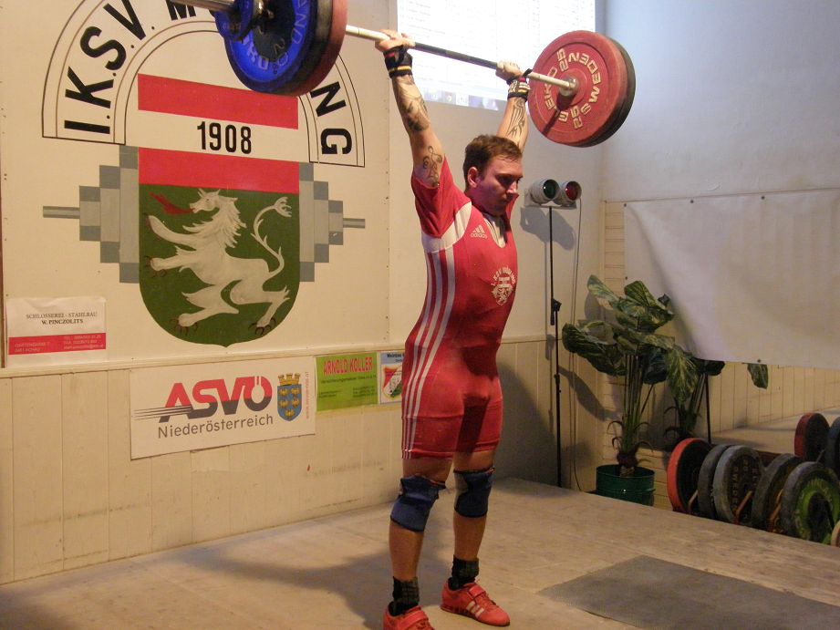 Wallner Matthias mit 90 kg Reissen und 120 kg Stossen brachte er seinen Beitrag, trotz leichter Verletzung und 243,85 Punkten.