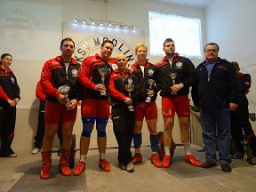 Ceidl Martin: Nach der OP wieder in Einsatz, sechs gültige Versuche. 92 kg Reissen und105 kg Stossen ergab 230,85...wichtige Punkte für den Sieg der Mannschaft.