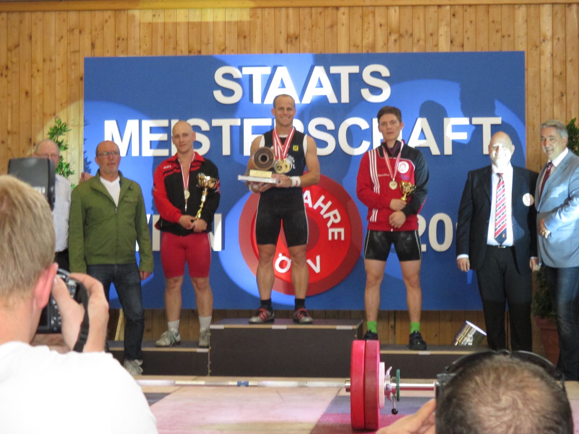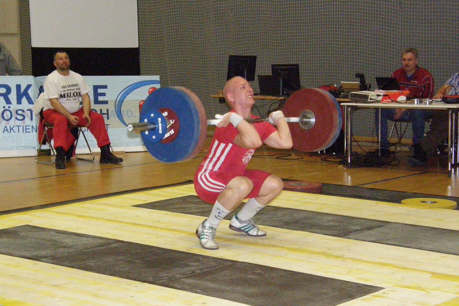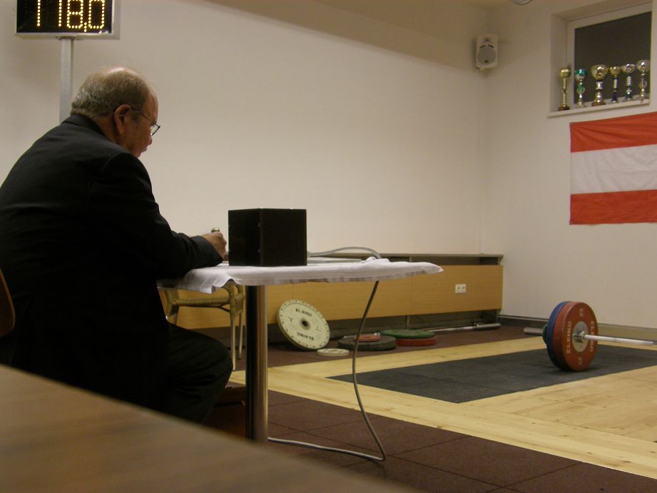 Unter den strengen Augen des Hr. Buergermeister Hintner + Sportstadtrat Maier konnte unser Mario einmal mehr seine Bestmarken verbessern, er schaffte 37kg im Reissen und 48kg im Stossen.