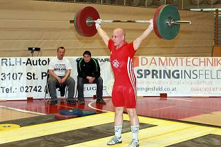 Legel Bernhard: Mit einer guten Leistung, 95 kg Reissen und 120 kg Stossen, holte sich Bernhard Gold in der Kategorie bis 77kg.