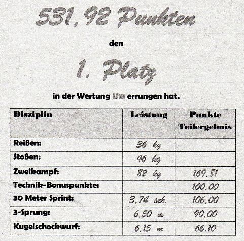 Legel Christoph Allg.--bis85kg—93kg Reißen &118kg Stoßen 4.Platz