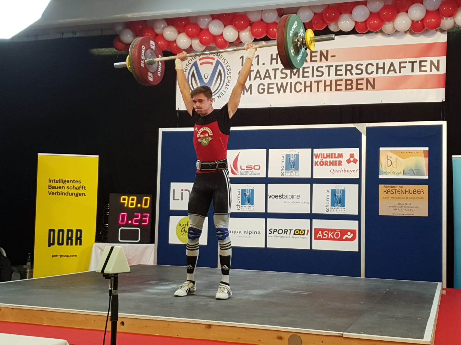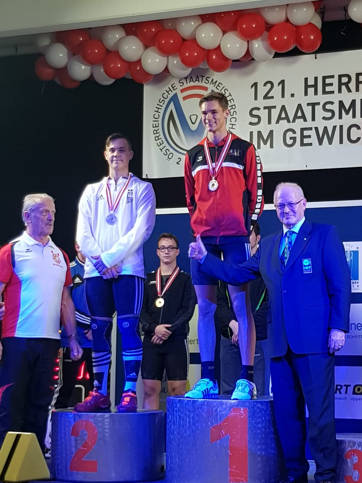 Mario Kanyka errang in der Kategorie -73kg mit zwei neuen persönlichen Bestleistungen im Reißen 82kg und im Zweikampf 180kg den 3.Platz.Bei den U-17 konnte er seinen Titel erfolgreich verteidigen und wurde neuerlich österreichischer Meister.