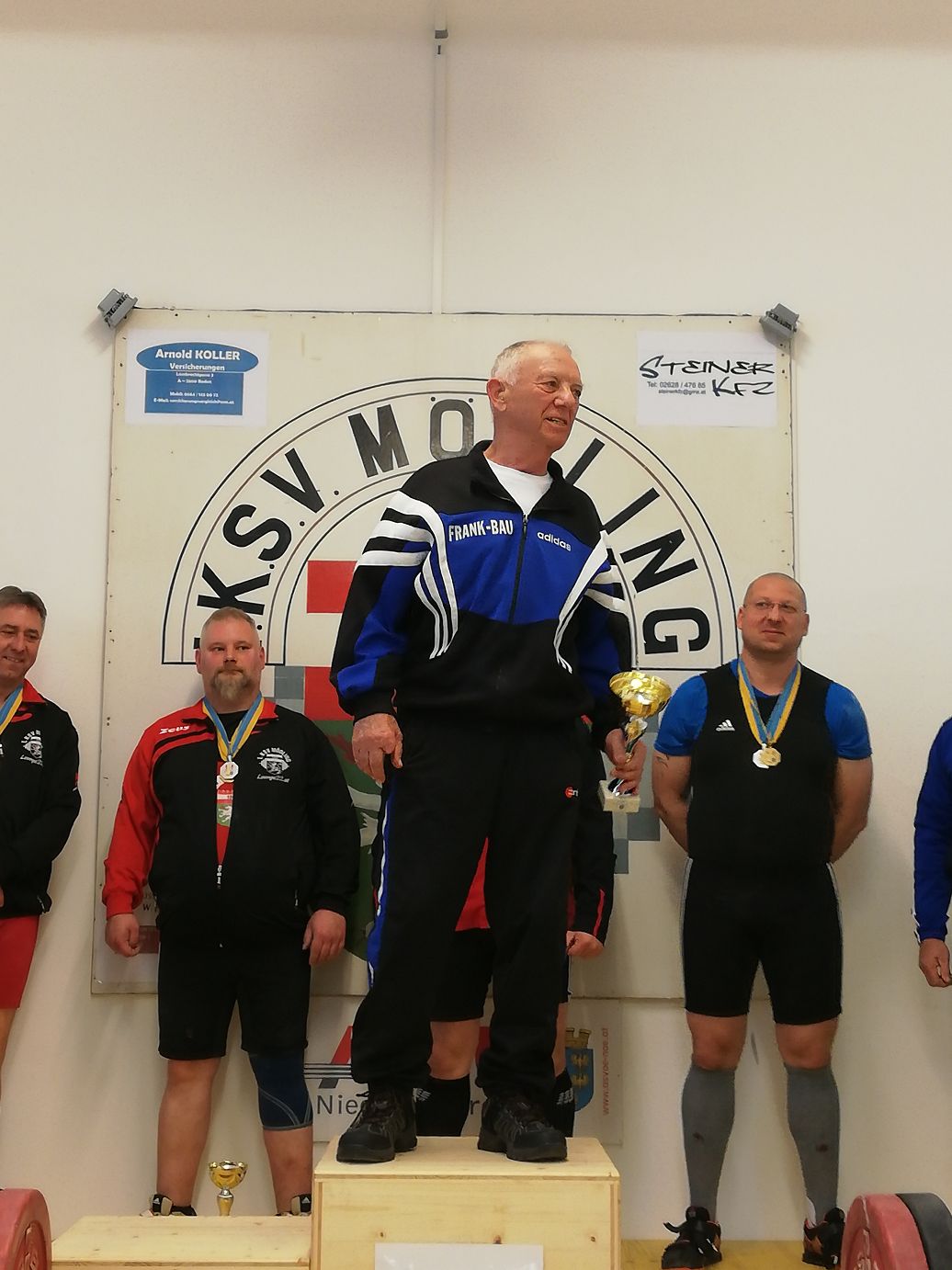 Der 84-jährige mit einem Körpergewicht von 64kg konnte 40kg Reißen und 47kg Stoßen. Der 62-jährige Galuska mit einem Körpergewicht von 59,20 kg konnte 65kg Reißen und 80kg Stoßen und musste sich um 27,24 Pkt. Bohatschek geschlagen geben. Platz 3 ging an einen L&0uml;wen: Michael Kanyka brachte mit einem Körpergewicht von 92kg, 85kg im Reißen und 108kg im Stoßen zur Hochstrecke das bedeutete 301,03 Pkt.!