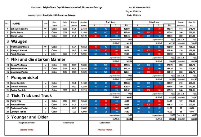 Am 16.11.2019 fand der 1. Triple-Team-Cup/Klubmeisterschaft von KSK Brunn statt. Tolle Veranstaltung mit großartigen Leistungen.